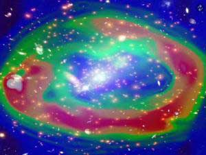 4年前,來自意大利/荷蘭的BeppoSAX衛(wèi)星的數(shù)據(jù)表明,在后發(fā)座星系團(tuán)中也可能存在高能X射線的某個特殊成分。瑞士日內(nèi)瓦大學(xué)Integral科學(xué)資料中心的多米尼克-艾克特說:“之前以已有兩個科研小組在對這些數(shù)據(jù)進(jìn)行分析,一組發(fā)現(xiàn)了這個成分,而另一組卻沒有!庇谑,艾克特及其同事開展了一項(xiàng)調(diào)研活動,探索這個神秘的現(xiàn)象。他們發(fā)現(xiàn),歐洲航天局的軌道伽馬射線天文臺明確探測到了蛇夫座星系團(tuán)中有異常高能X射線的存在,產(chǎn)生這種X射線的方式有兩種,且均包含高能電子。一種可能性是,電子被橫穿星系團(tuán)的磁場捕獲,從而繞磁場線進(jìn)行螺線運(yùn)動,以X射線形式釋放出同步加速器輻射。另一種可能性是,電子可能與宇宙起源時殘留下的微波碰撞,發(fā)出X射線的電子。前者的電子能量是后者電子能量的10萬倍。